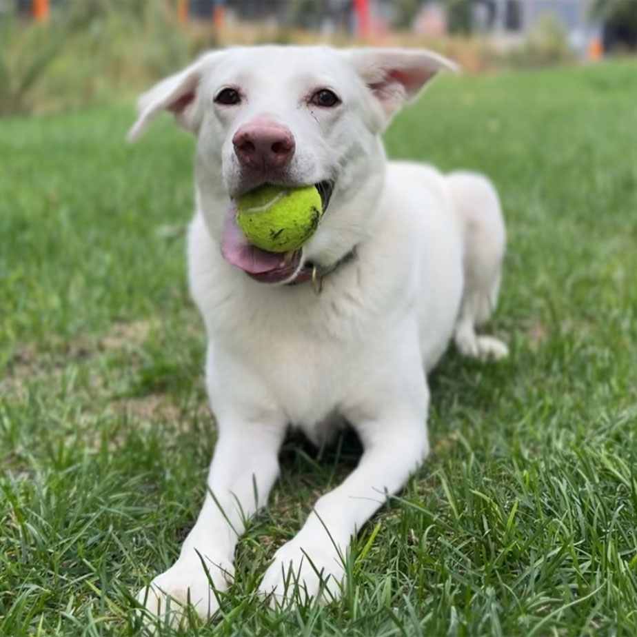 lot of spunk and speed when chasing after a ball in the park! Denali enjoys walks in the