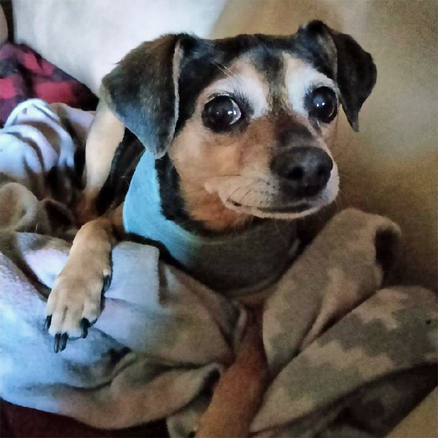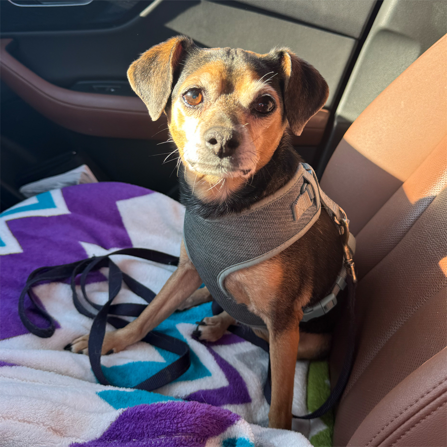 Pringle is an approximately 8-year-old chihuahua/beagle mix with a very curious mind and a heart full of love. She has gotten along well with her foster family’s other dogs and is comfortable on car rides. She has a bit of separation anxiety and may do best with someone who can keep her company throughout the day.