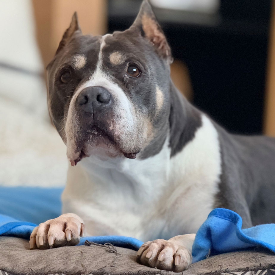 Zaylee is a happy and gentle cuddlebug who loves human attention — belly rubs are her favorite. She’s been wonderful with everyone who has come to her foster’s house — adults and kids — and soaks up the attention. She’s great around cats and and other dog